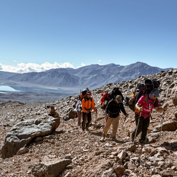El día del intento arrancamos muy temprano. Es largo y exigente pero las vistas y el camino son súper gratificantes. La caminata con crampones sobre el glaciar del cráter del volcán es muy divertida. Luego de 15 horas de caminata, que nos reciban con un mate es muy reconfortante. El descenso del último día es agotador, pero con el almuerzo final se recuperan las energías.